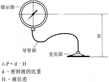 尤其對(duì)于帶軟接連管的(de)隔膜壓力表,由于受壓部與通(tō↓≠ng)用(yòng)型壓力表安裝位置不(bù)同,會(huì)産生(shēng)如(rú)圖≤→所示的(de)液位差的(de)影(yǐng)響量ΔP。
