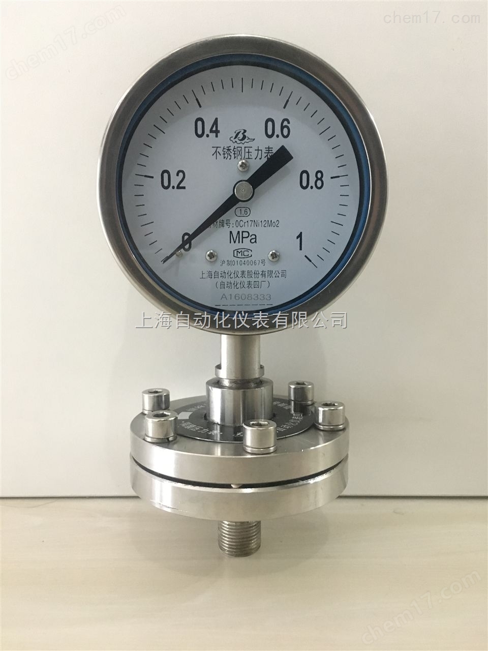 上(shàng)海(hǎi)自(zì)動化(huà)儀表四廠(chǎ✘™↓♥ng)隔膜壓力表YTH-100F2B