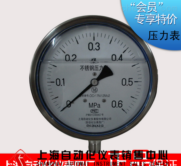 Y-60BFZ不(bù)鏽鋼真空(kōng)耐震壓力表-上(shàng)海(hǎi)↓™♦♦自(zì)動化(huà)儀表四廠(chǎng) 該圖實際參數(shù)>®‌對(duì)照(zhào) 産品名稱:不(bù)鏽鋼真空(kōng)耐震壓力表 ★₹型号:Y-40BF-Z 材...