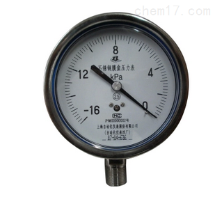 不(bù)鏽鋼膜盒壓力表參照(zhào)原膜盒壓力表的(de)結構特點而研制(zhì)的(d♠↔e)具有(yǒu)耐腐蝕作(zuò)用(yòng)的(de ‍  )微(wēi)壓表。應用(yòng)于鍋爐通(tōng)¥α風(fēng)的(de)氣體(tǐ)管道(dào)等設備上¶π♠(shàng),在耐腐要(yào)求較高(gāo)¥÷φε的(de)工(gōng)藝流程中測量各種氣體(tǐ)介質的('✔‌de)微(wēi)壓和(hé)負壓。