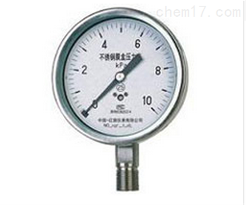 不(bù)鏽鋼膜盒壓力表YE-100B不(bù)鏽鋼膜盒壓力表參照(zhào)原膜盒壓力表的(de)結構特點而研 ÷≥©制(zhì)的(de)具有(yǒu)耐腐蝕作(zuò)用(yòng)的(§λde)微(wēi)壓表。應用(yòng)于鍋爐通(tōng)風(fēng)的(d¶≠®"e)氣體(tǐ)管道(dào)等設備上(shàn✔•♥g),在耐腐要(yào)求較高(gāo)的(de)σ>工(gōng)藝流程中測量各種氣體(tǐ)介質的σΩ≠(de)微(wēi)壓和(hé)負壓。